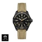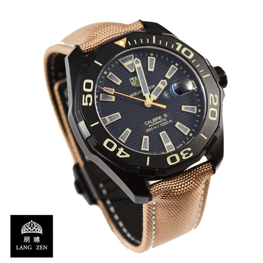 The TAG Heuer Aquaracer WAY208C.FC6383 is a luxurious watch with a sleek black design. The 904L stainless steel case and black bezel are complemented by a black dial with stick indices and 904L stainless steel stick hands. The watch is powered by an automatic Heuer 05 movement with a 60-hour power reserve and a precision of -3/+3 seconds per day within COSC certification limits. The watch also features a black textile bracelet with adjustable links and a 904L stainless steel fold clasp.