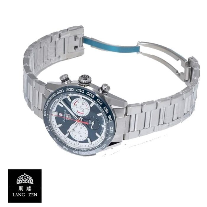 The TAG Heuer Carrera Steel Blue Replica is a striking watch that is sure to turn heads. It features a 904L stainless steel case and bezel. both in a beautiful steel blue color. The movement is an automatic Heuer 02 caliber with a 60-hour power reserve and precision within COSC certification limits. The dial is blue with stick and dot indices. and the hands are 904L stainless steel stick hands. The bracelet is adjustable and made of 904L stainless steel with a fold clasp.