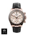 The Rolex Cosmograph Daytona White Dial 116515LN-0003 Replica is a high quality watch. It features a 904L stainless steel case with a rose gold color and a black bezel. The watch is 40.00 mm in size and 12.40 mm in thickness. The dial is white with stick and dot indices. and the hands are made of 904L stainless steel. The movement is an automatic caliber 4130 with a power reserve of 60 hours and a precision of (-3/+3 sec/day) within COSC certification limits. The bracelet is made of leather with an adjustable link and a 904L stainless steel folding clasp in rose gold.